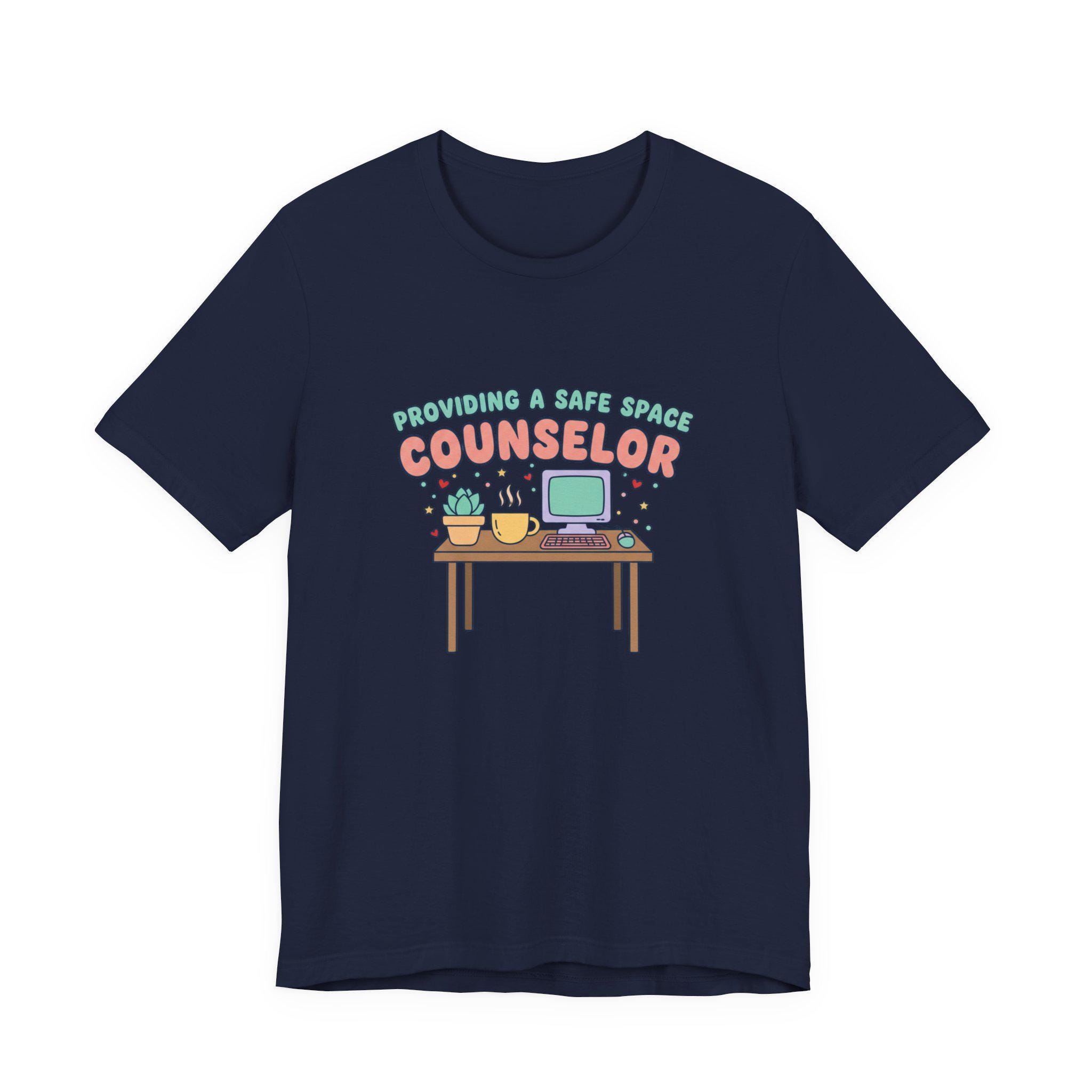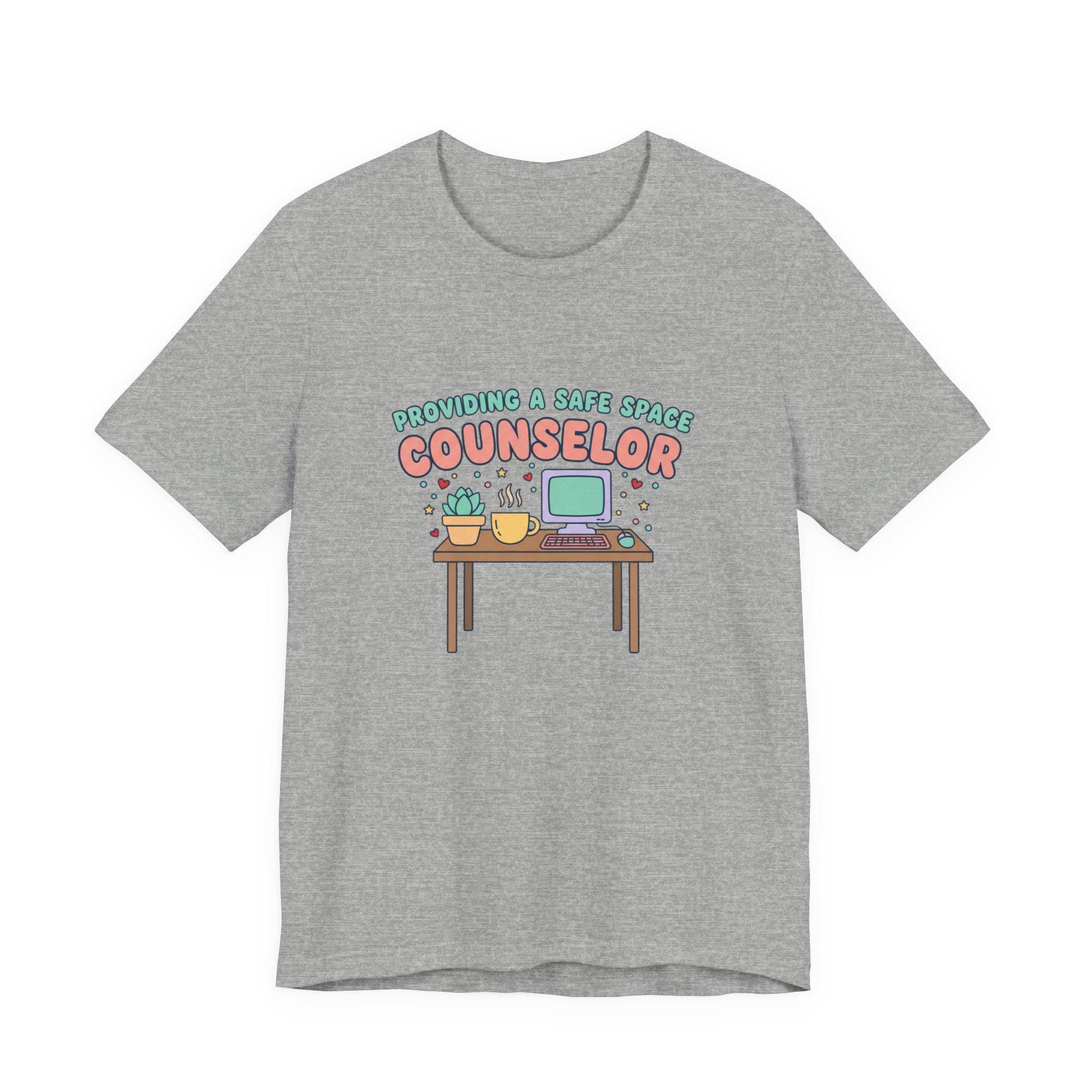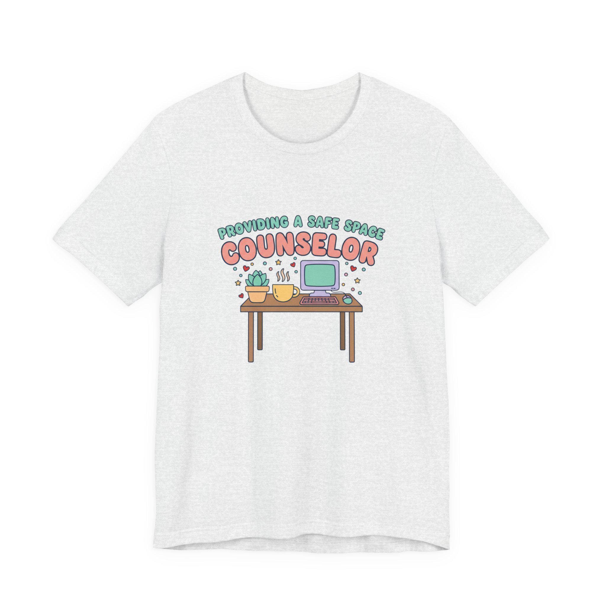 Soft pastel affirmation tee for counselors and clinic staff: a warm, rounded design that pairs gentle typography with a cozy desk illustration to support caregiving teams. The artwork uses light pastel palettes and a friendly rounded sans/serif style aligned with the “Pastel Healthcare Affirmations” trend, making workplace morale feel quietly uplifting and professional-friendly. Wear it on shift or during study sessions to signal calm, team-minded encouragement in clinical and campus settings.