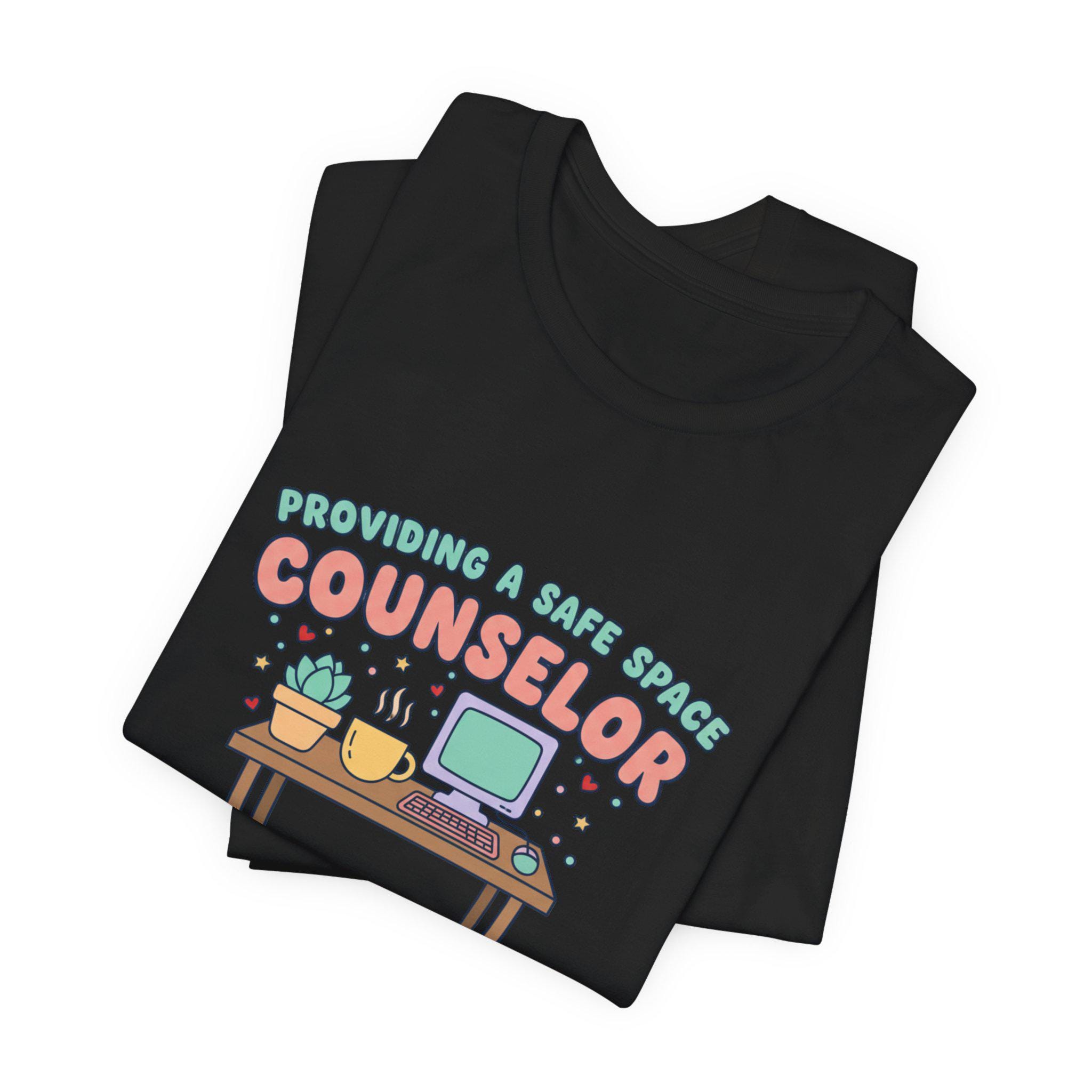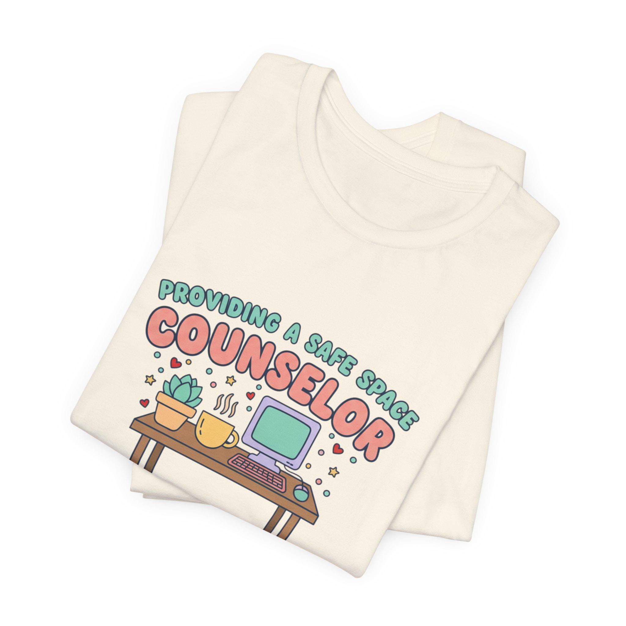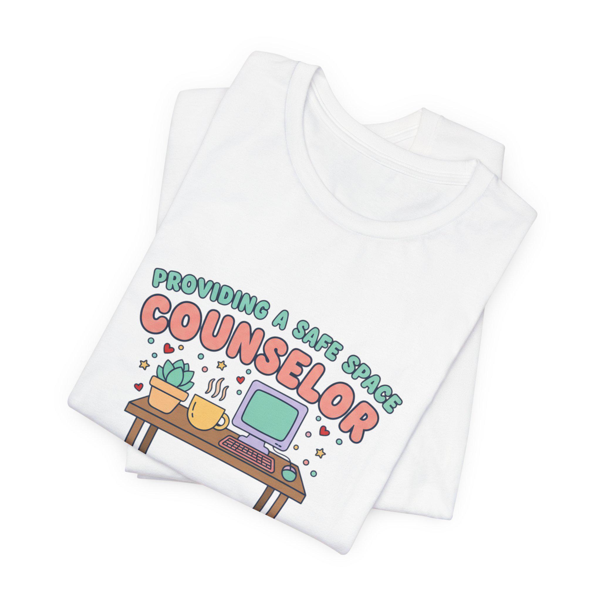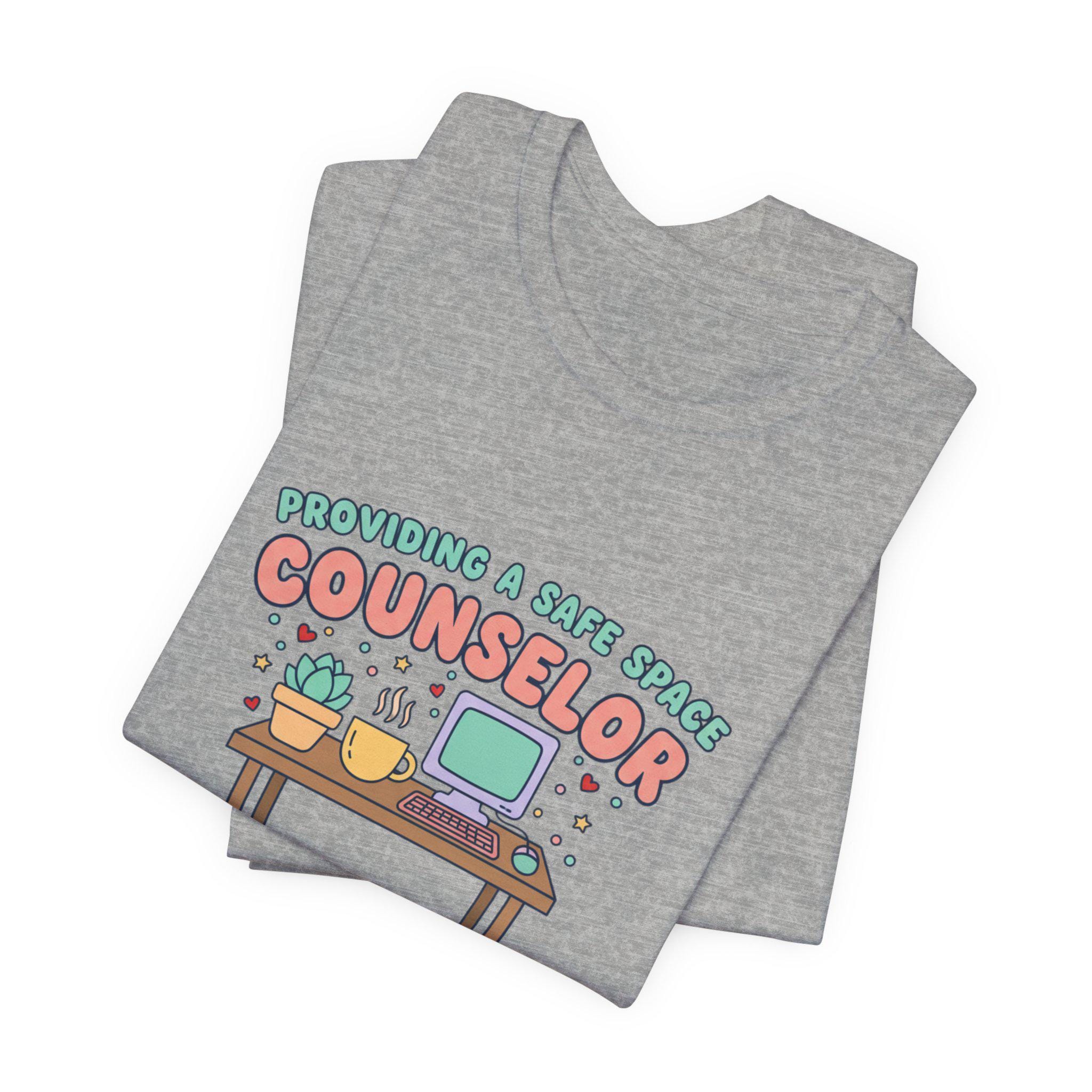 Soft pastel affirmation tee for counselors and clinic staff: a warm, rounded design that pairs gentle typography with a cozy desk illustration to support caregiving teams. The artwork uses light pastel palettes and a friendly rounded sans/serif style aligned with the “Pastel Healthcare Affirmations” trend, making workplace morale feel quietly uplifting and professional-friendly. Wear it on shift or during study sessions to signal calm, team-minded encouragement in clinical and campus settings.