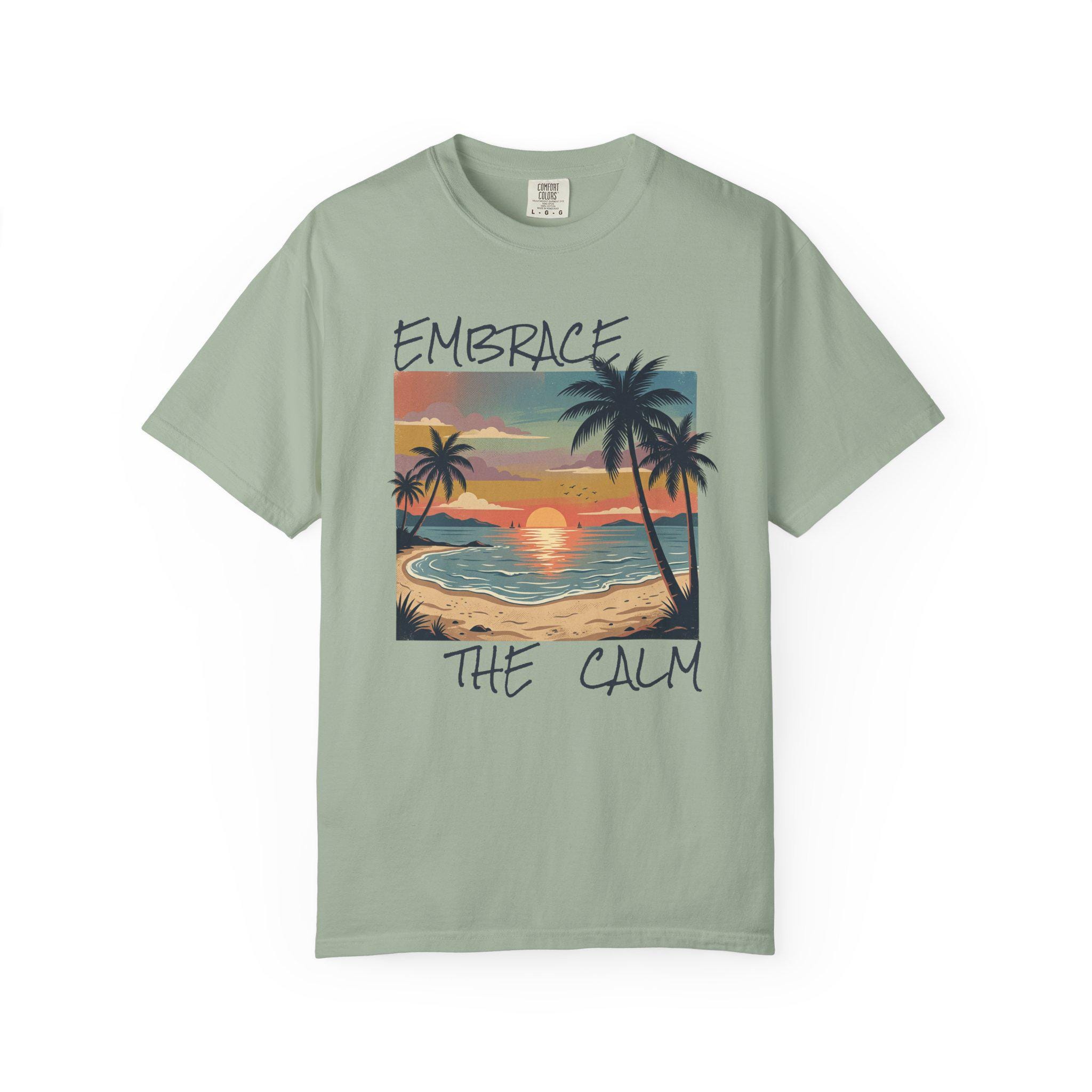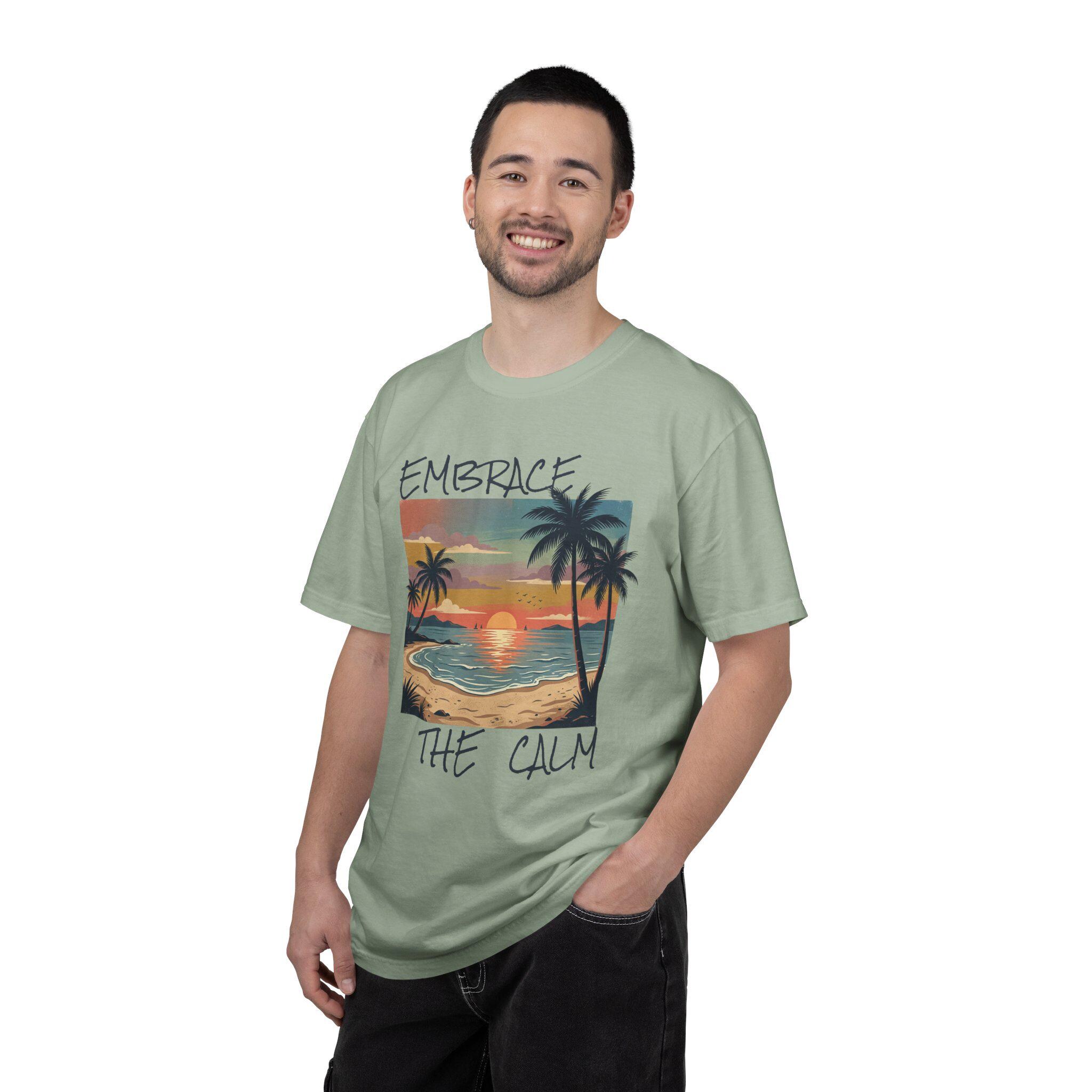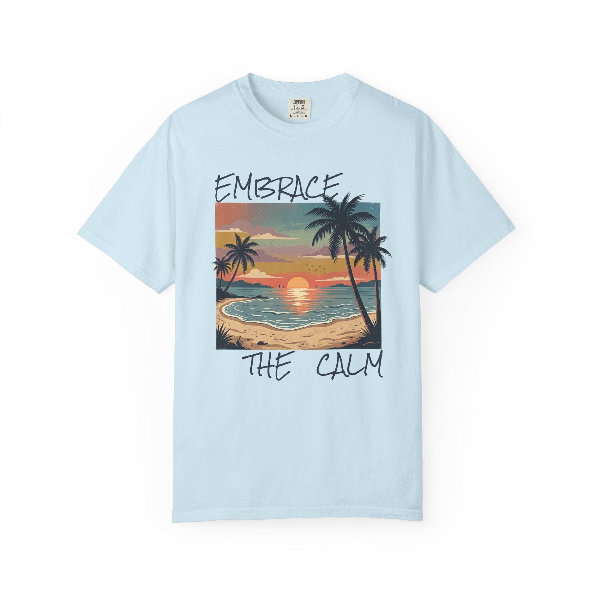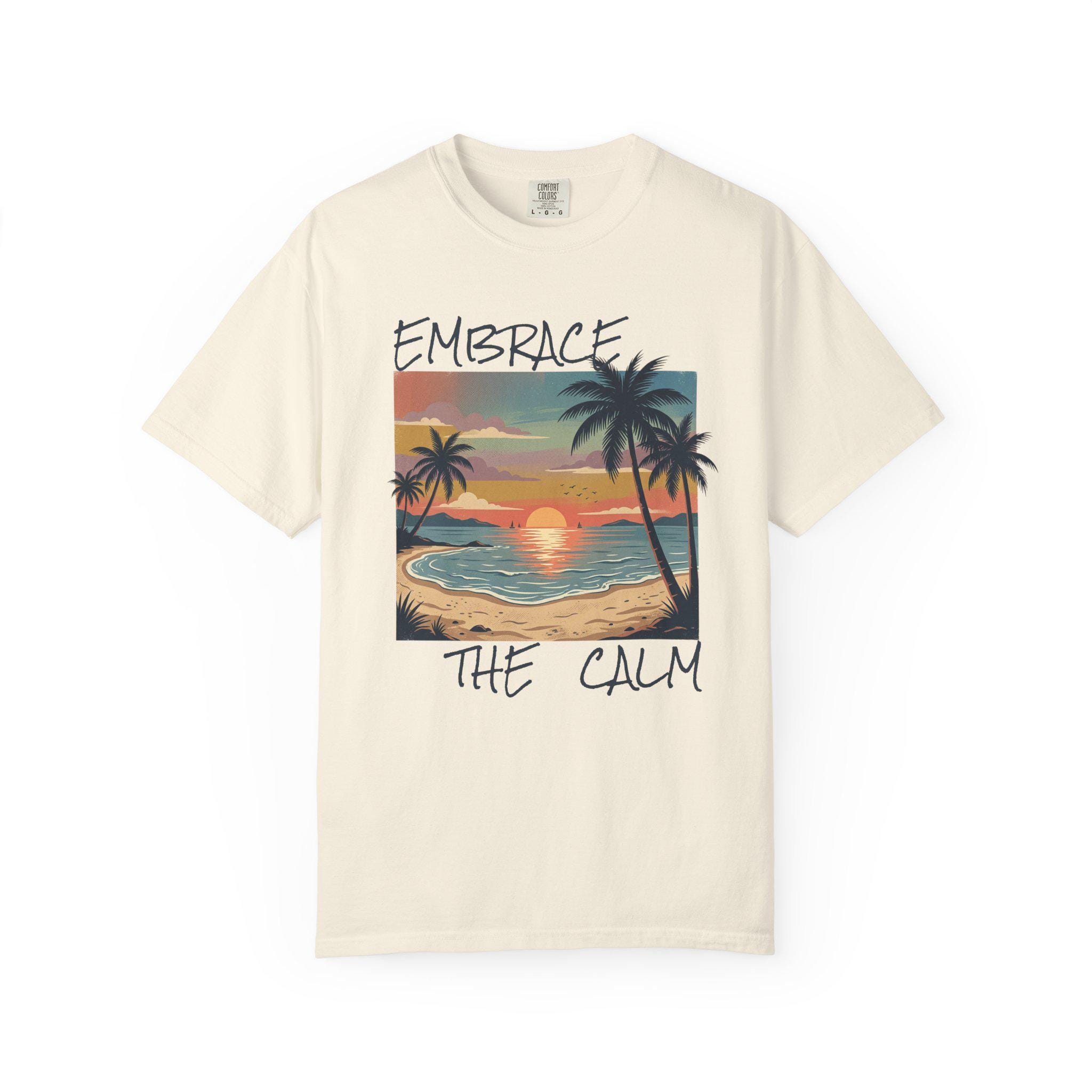 Sink into the slow glow of a seaside evening. This garment-dyed tee carries a hand-painted sunset scene—palm silhouettes, gentle surf, and warm, muted hues—printed on a soft, lived-in cotton canvas. It feels like a long walk on quiet sand; sleeves that sit relaxed, a heavyweight knit that hangs with purpose. Wear it to unwind after a hectic week, bring it along for weekend escapes, or keep it as your go-to layer when you need a reminder to breathe and slow down. The vintage-inflected colors age beautifully with wash and wear, making each shirt feel more personal over time.