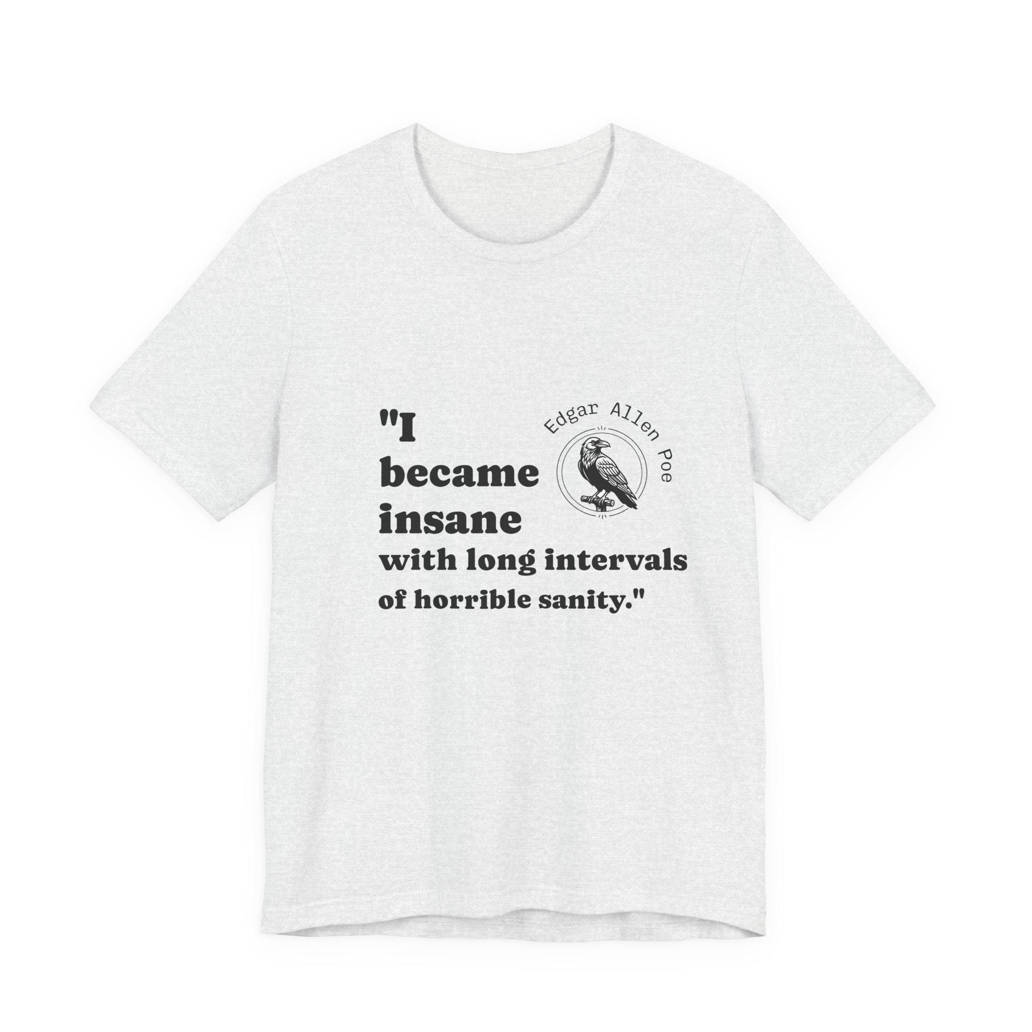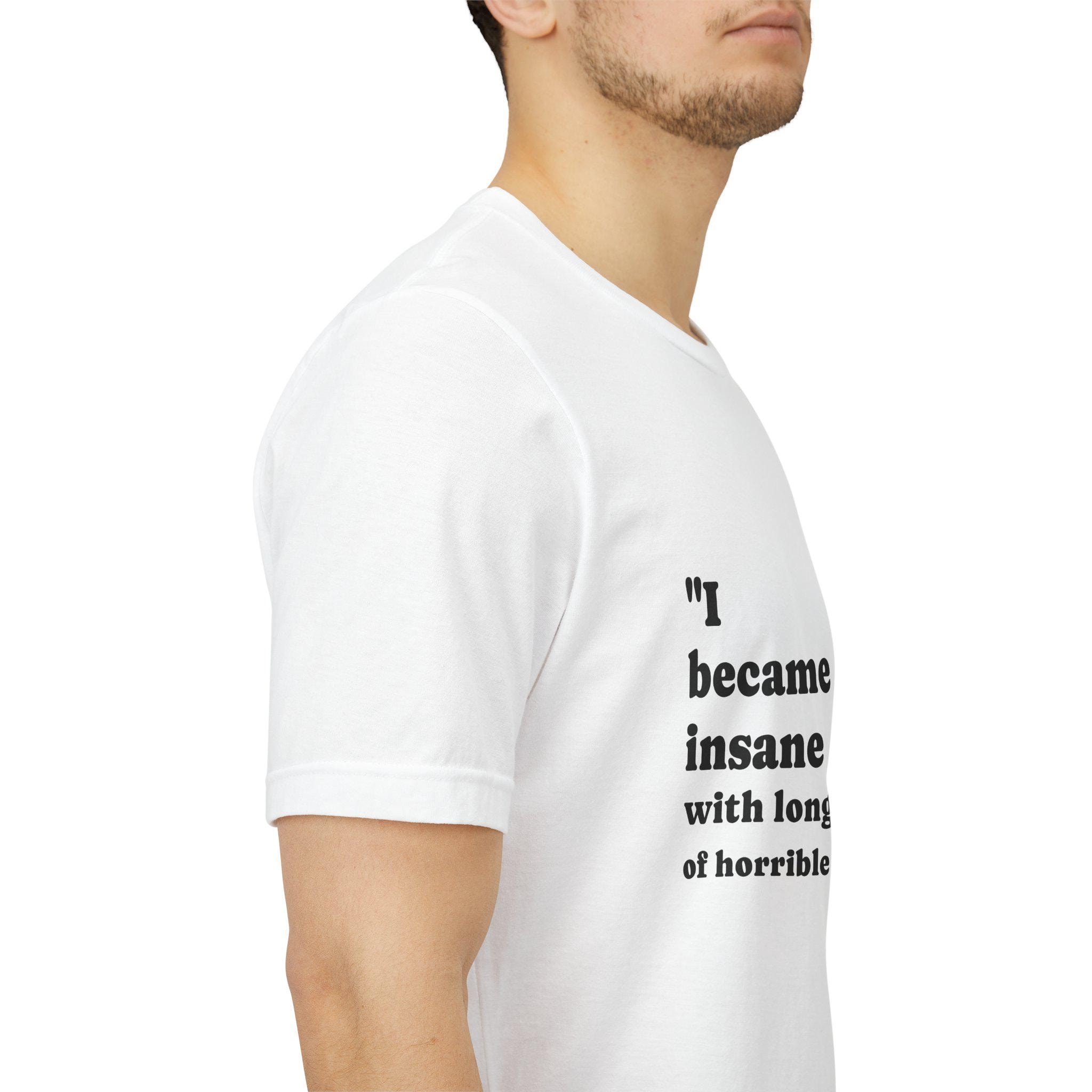 Breathe wit and quiet rebellion into your casual wardrobe with this lightweight, soft cotton tee. The design pairs a thoughtful, literary quote with a small vintage-style illustration, creating a subtle conversation starter that reads like a private joke. It sits neatly at the collar and drapes cleanly over the body — wear it solo with jeans or layered under a cardigan for cooler nights. The message lands dry and clever; the feel is lived-in and comfortable. This tee belongs to those who appreciate smart humor, low-key style, and garments that age gracefully alongside the stories they collect.