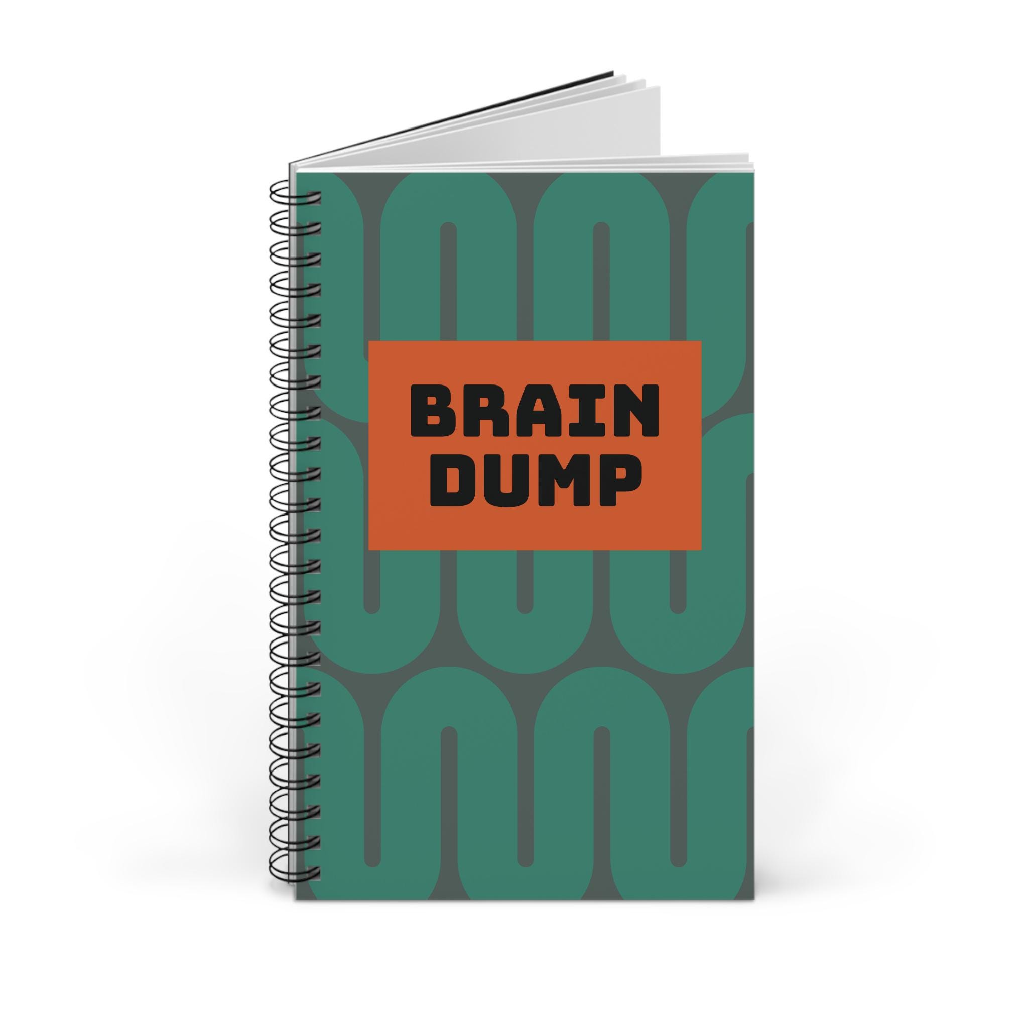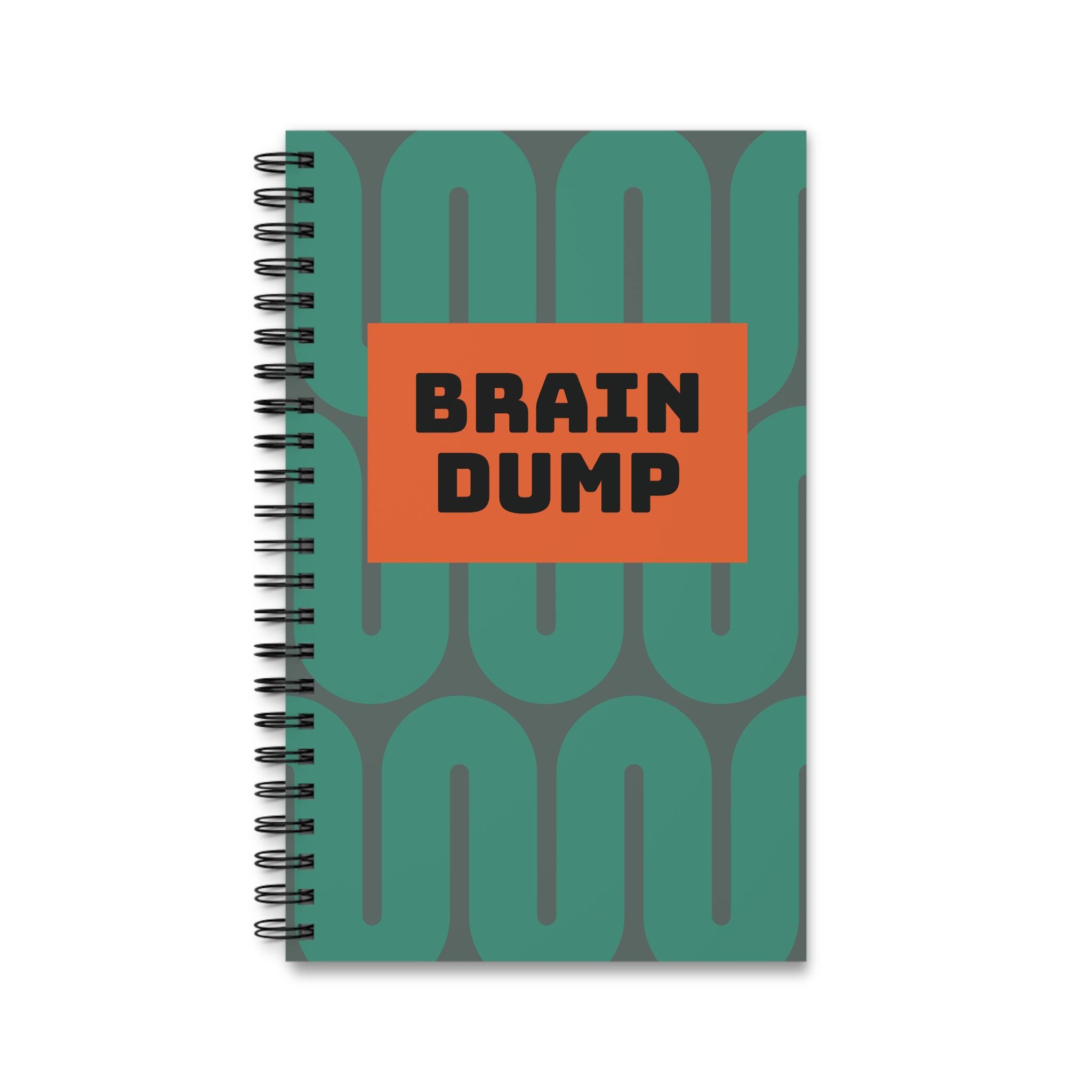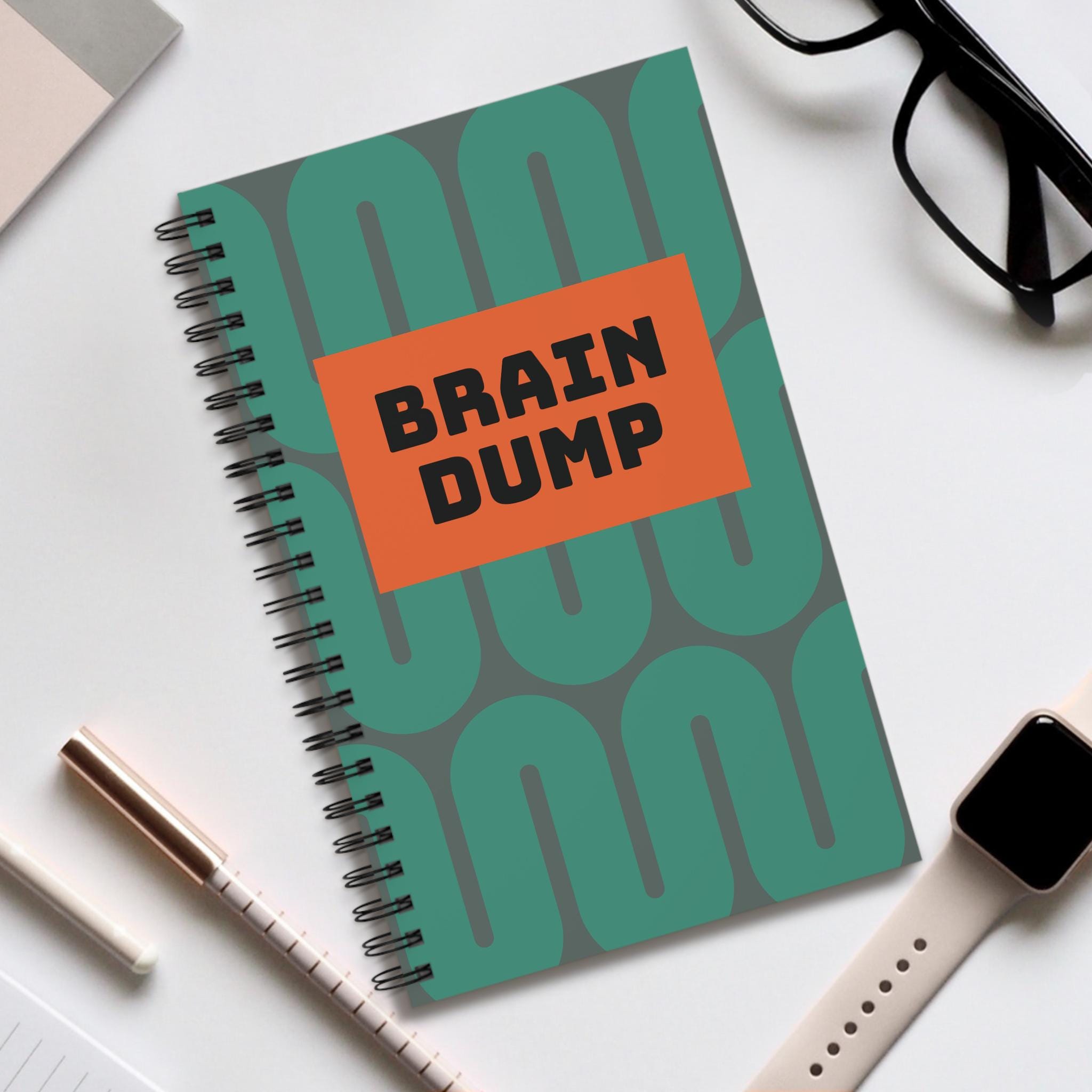 A compact, spiral-bound journal built for clearing your head and capturing ideas quickly. The bold green cover with repeating rounded lines frames a burnt-orange block that reads “BRAIN DUMP” — a clear invitation to let thoughts spill out without judgment. Inside, 160 blank pages on smooth 90gsm paper make writing satisfying, whether you’re sketching plans, jotting a to-do list, or emptying your mind after a long day. The semi-gloss laminated front adds durability while keeping colors bright and crisp; a sturdy black back cover and spiral binding let the book lie flat for easy note-taking. REACH-certified and made with care, this journal feels practical and encouraging — a small, everyday companion for focused moments of clarity.
