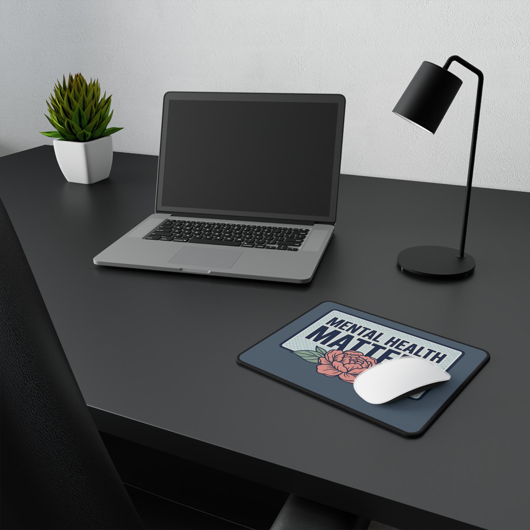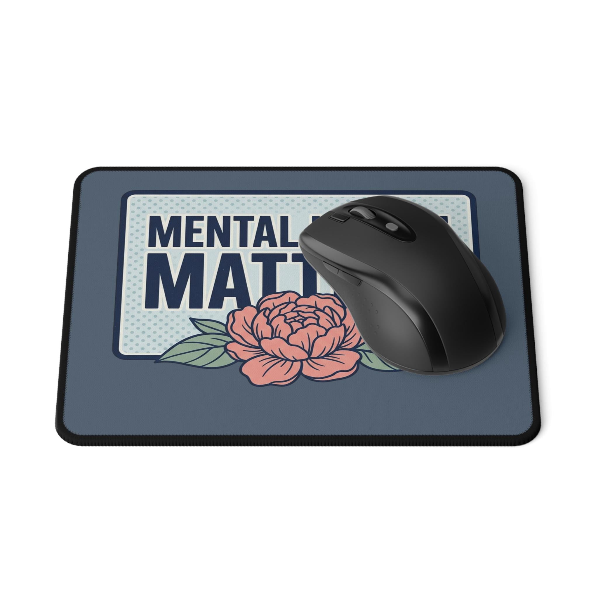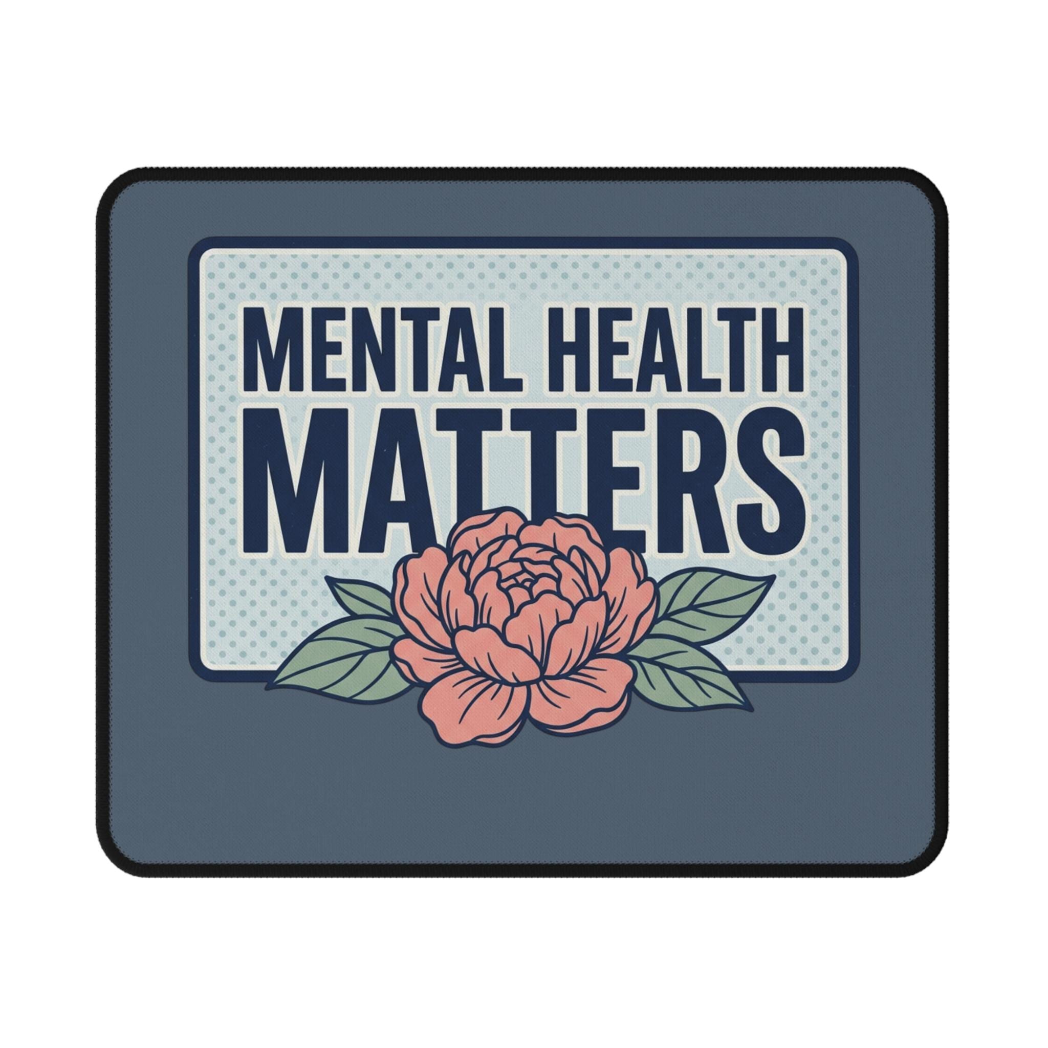 This compact mouse pad brings calm and clarity to your desk. The dusky blue background and vintage-style badge declare “MENTAL HEALTH MATTERS” in bold type, grounded by a soft peony illustration that feels caring rather than loud. It sits low-profile on your desk so your wrist stays comfortable during long work sessions, study bursts, or mindful breaks. The rubberized base holds the pad steady through frantic clicks and late-night scrolling, while the smooth polyester top gives optical and laser mice consistent, quiet tracking. Keep it by your laptop, at your home office, or on a shared workspace to quietly remind yourself — and others — that care and compassion belong in everyday places.