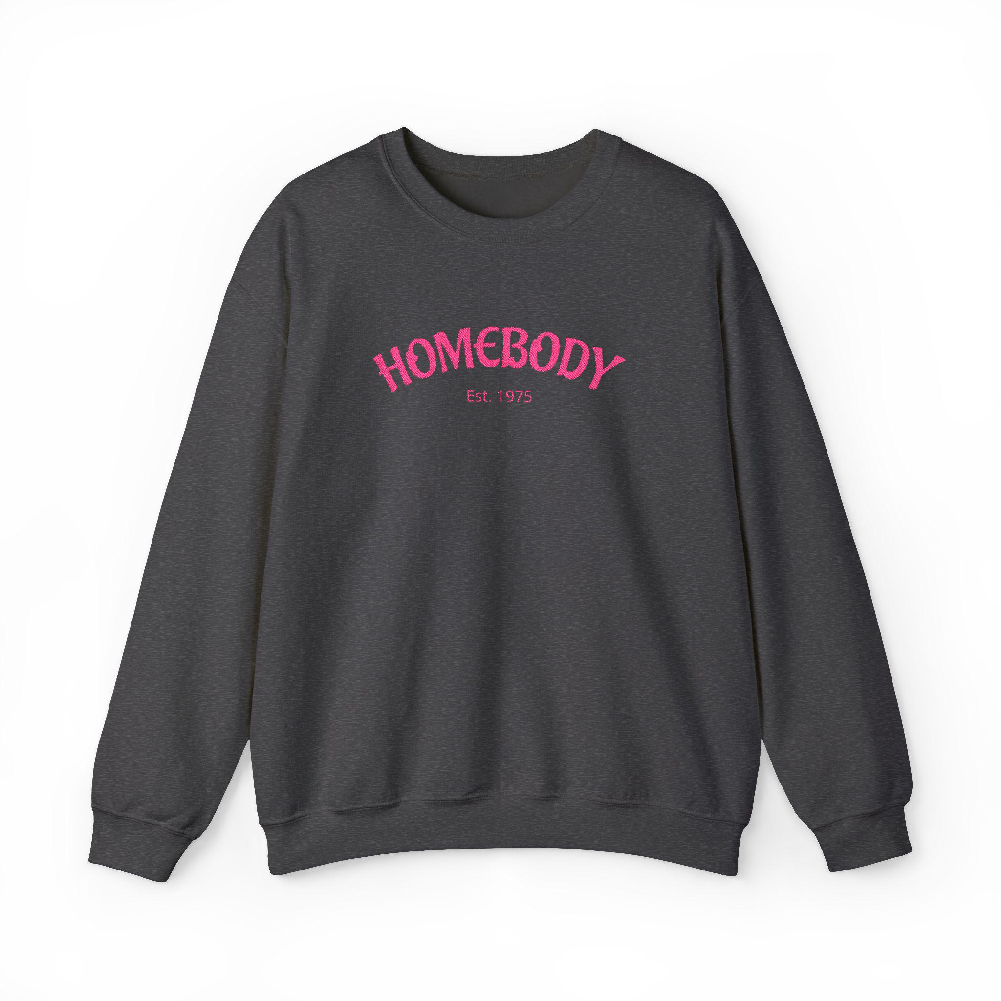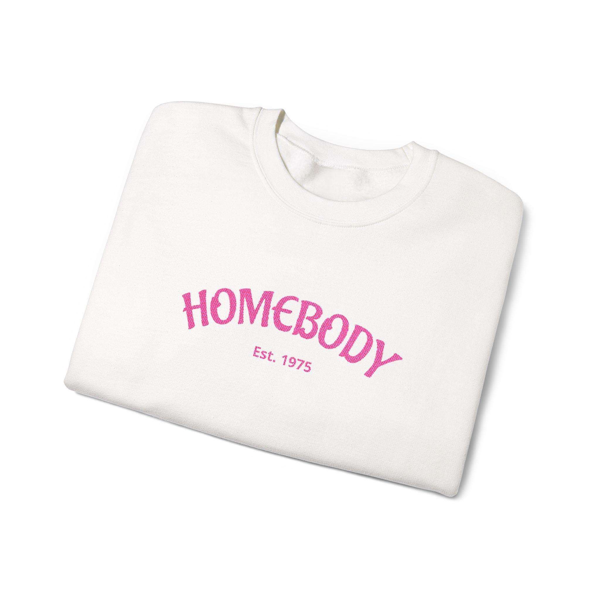 A soft, cozy crewneck that feels like a warm invitation to slow down. This medium-weight sweatshirt wraps you in a familiar comfort — brushed inside for that lived-in softness and built to move through quiet mornings, couch afternoons, and low-key nights out. The embroidered "HOMEBODY" script on the chest reads like a friendly nod to anyone who prefers blankets over busyness, with neat ribbed cuffs and waistband that keep shape without squeezing. It’s cut in a classic crew silhouette that layers easily and wears well on its own. Ethically sourced cotton and durable double-needle stitching mean this becomes one of those go-to pieces you reach for again and again.